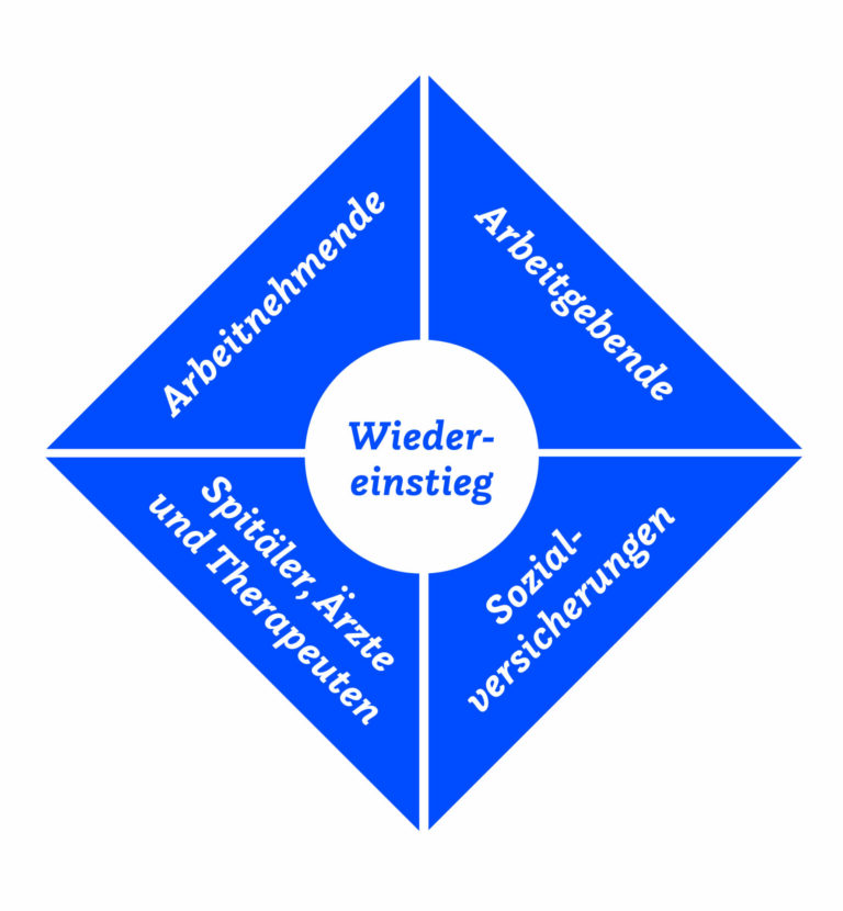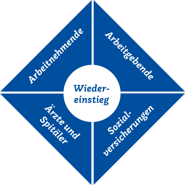 Ein erfolgreicher Wiedereinstieg nach länger dauernder Arbeitsunfähigkeit am Arbeitsplatz gelingt nur, wenn alle Beteiligten zusammenarbeiten.